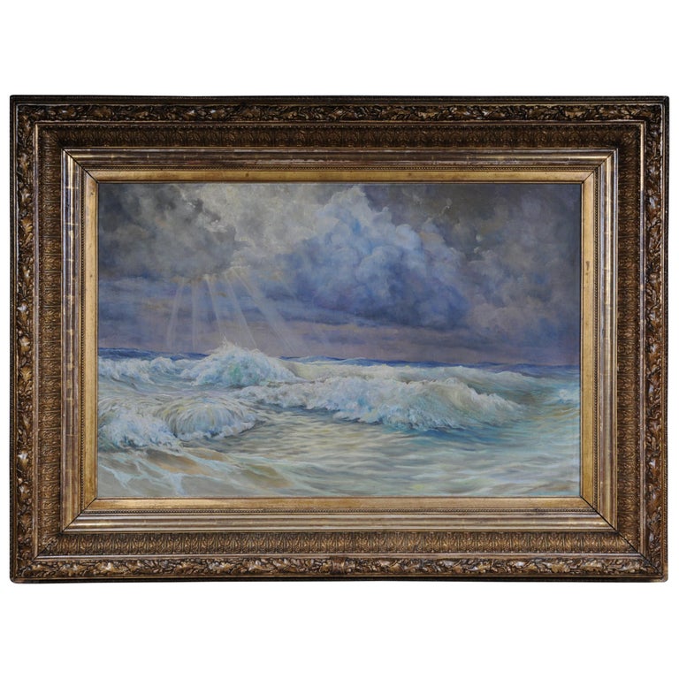 19th Century Oil Painting View From The Sea In A Big Gild Frame