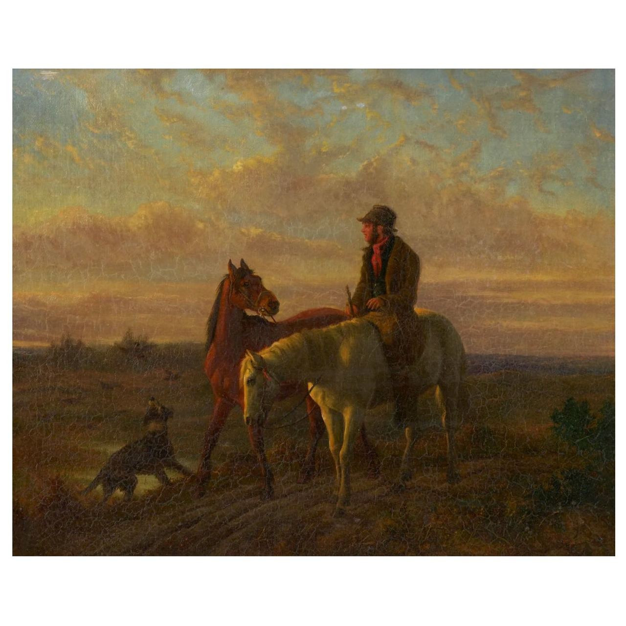 Rider On A Path A Fine Equestrian Oil Painting 19th Century