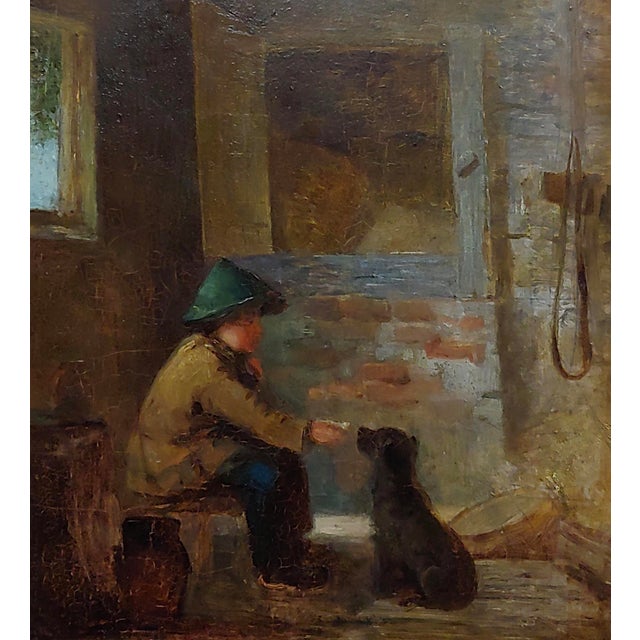 Chinese Boy With Dog 19th Century Oil Painting Chairish