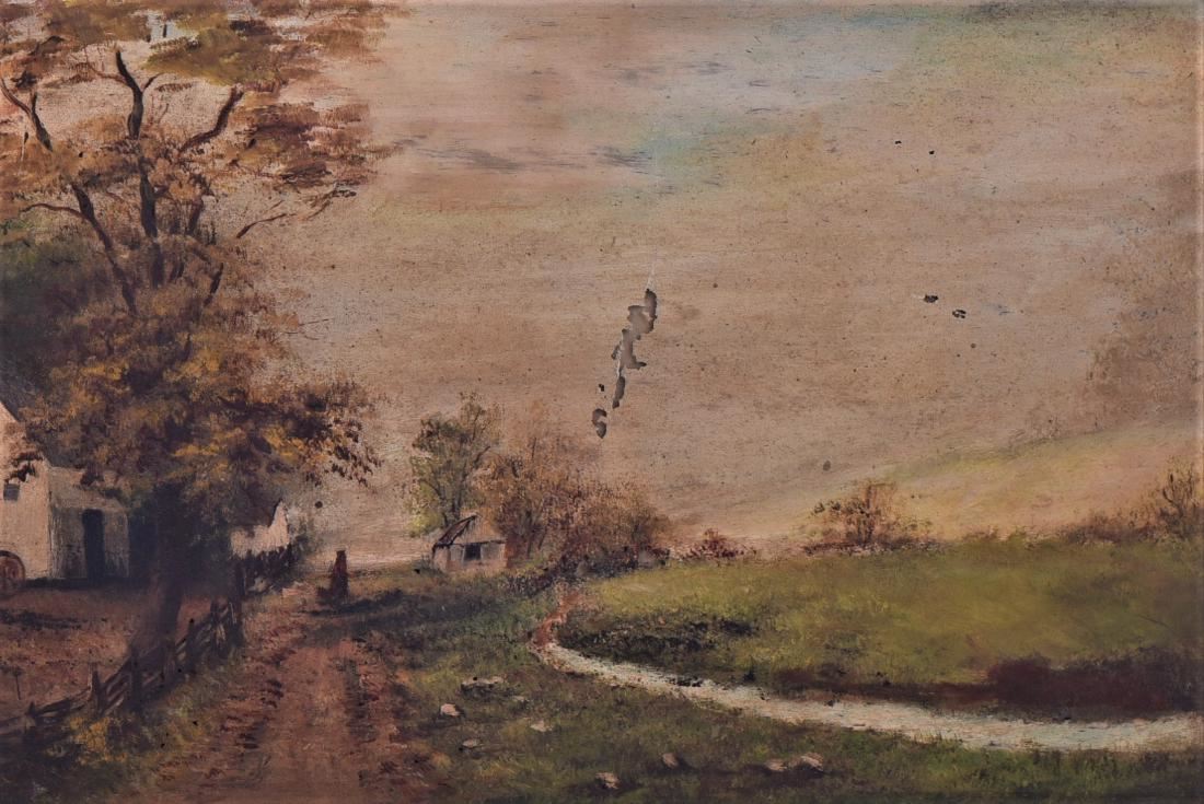 19th Century Oil Painting On Mirror Of A Farmhouse