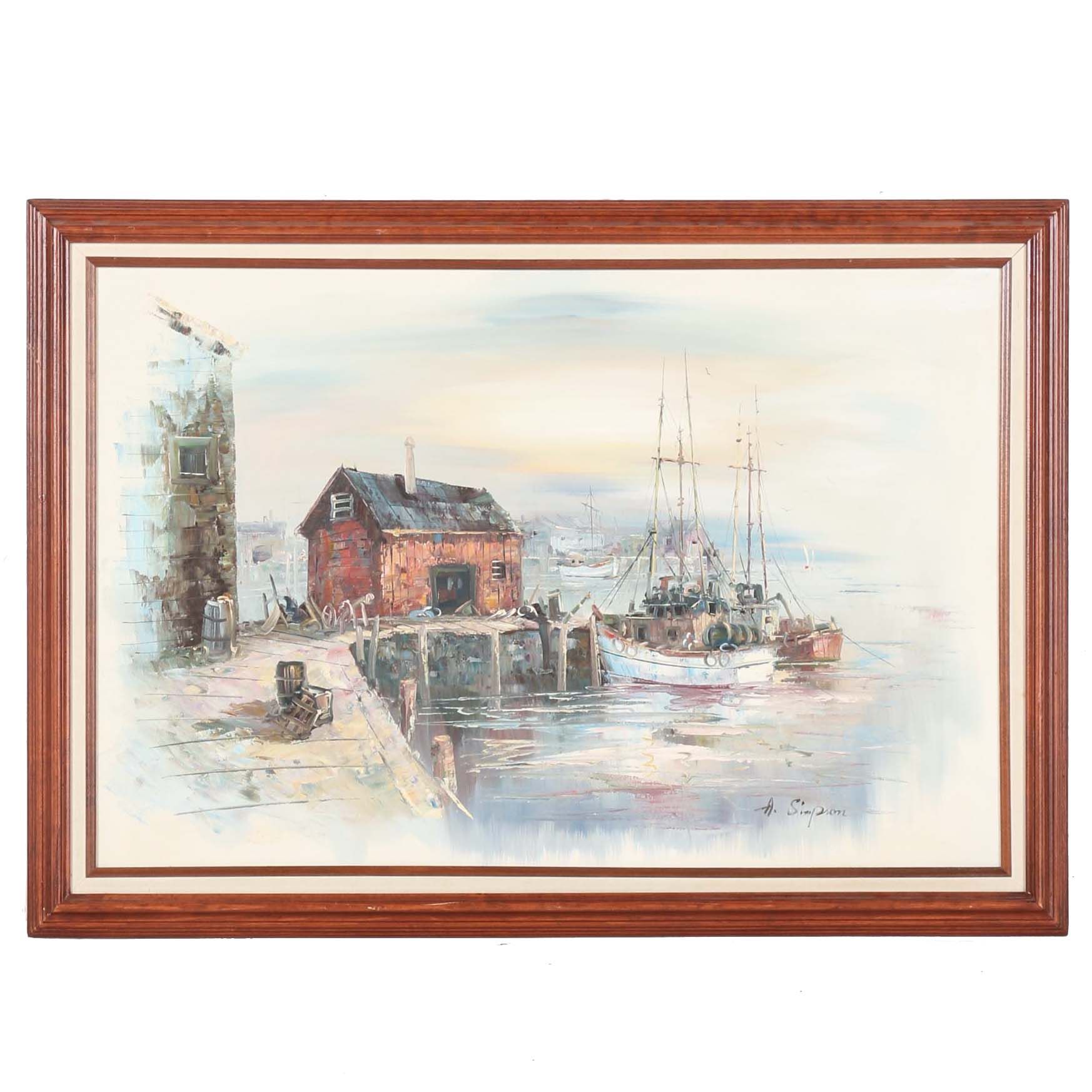 A Simpson Oil Painting On Canvas Of A Harbor Dock Ebth