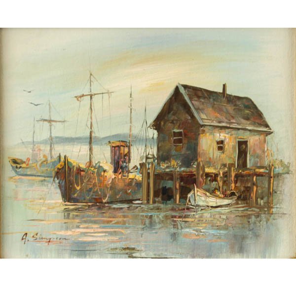 Lot Art A Simpson Oil Painting Of Harbor Scene