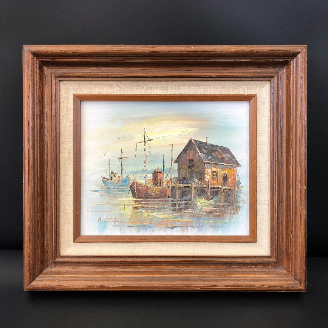 A Simpson Oil On Board Panel Boats At The Dock Painting May 19