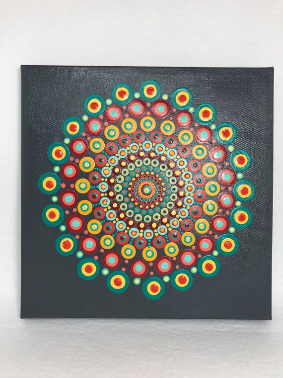 Mandala Original Painting On Canvas Dotilism Dot Painting Etsy