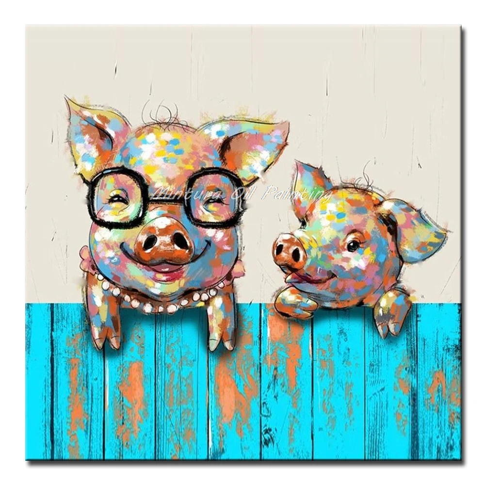 Mintura Art Hand Painted Acrylic Canvas Oil Paintings Happy Pigs