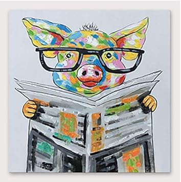 Modern Canvas Abstract Animal Pig With Glasses Oil Painting Wall