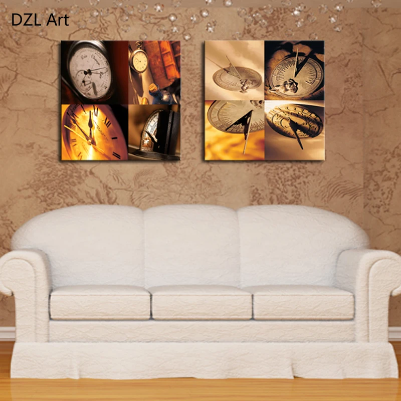 Unframed 2 Sets Abstract Clock Modern Home Wall Decor Canvas