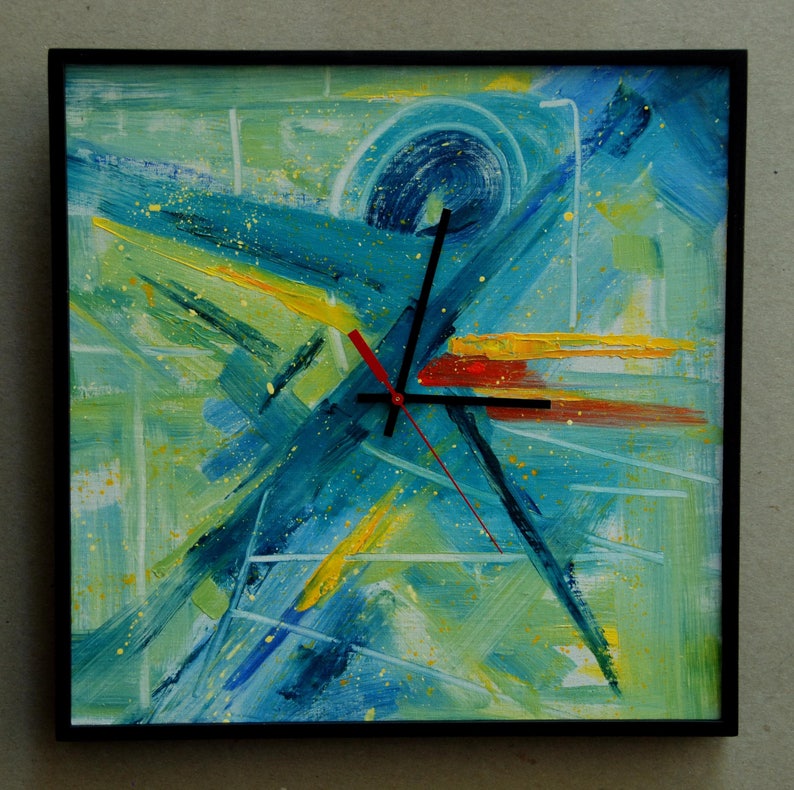 Featured in two sizes this wall clock is vibrantly printed with acryliprinthd process to ensure the highest quality display of any. Browse stunning custom abstract clocks from the zazzle marketplace. Wall clock painted clock original art clockabstract art clock love gift.