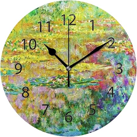 Wall Clock Round 10 Inch Diameter Silent Art Lily Flower Abstract