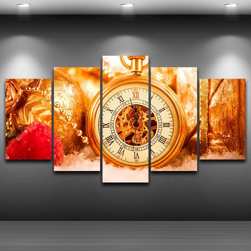 Canvas Home Decor For Living Room 5 Pieces Abstract Clock In The