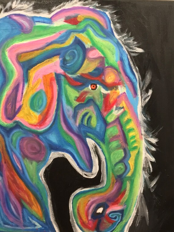 Abstract Elephant Oil Painting On Gallery Canvas Abstract Etsy