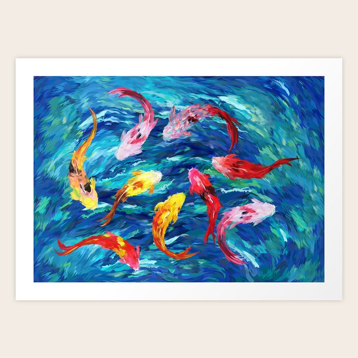 Koi Fish Rainbow Abstract Paintings Art Print By Greenlight08