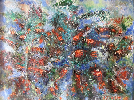 Abstract Fish Painting Oil On Panel By Devinepaintings On Etsy