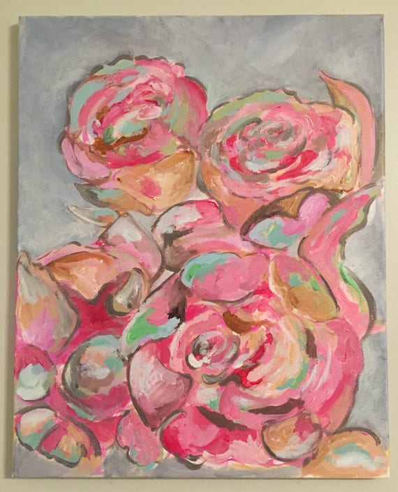 Abstract Floral Painting Acrylic On Canvas Painting Original Etsy