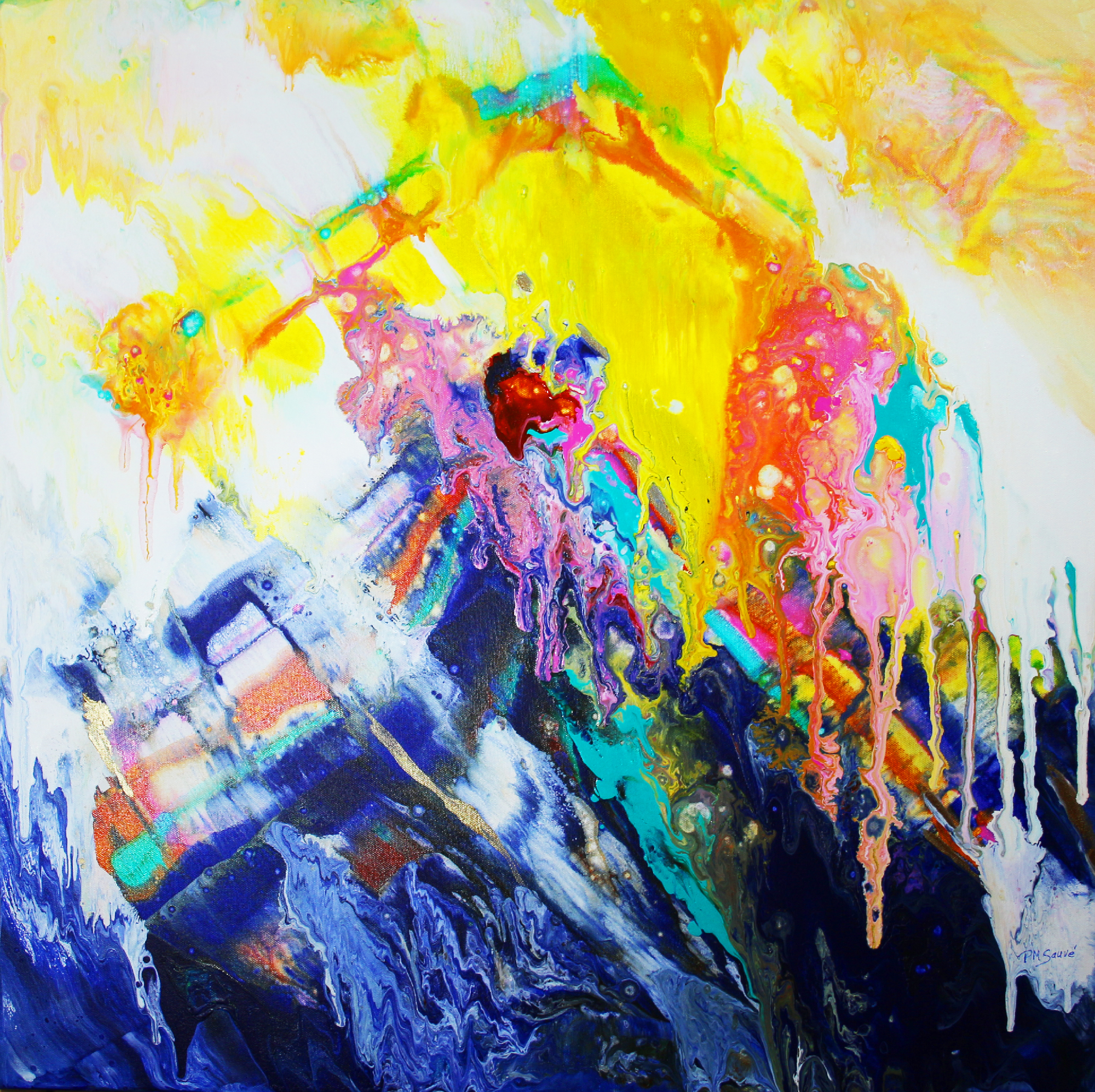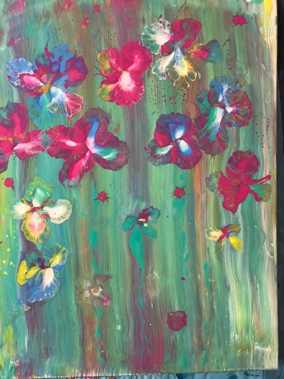24 Iridescent Flower Abstract Garden Original Acrylic Pour
