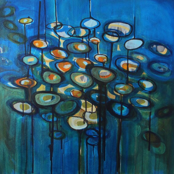Abstract Blue Acrylic Painting Flower Garden Art Moon Etsy