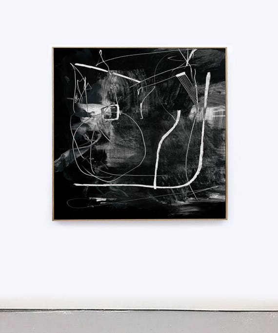 Large Black White Abstract Painting Livingroom Wall Art Large Wall