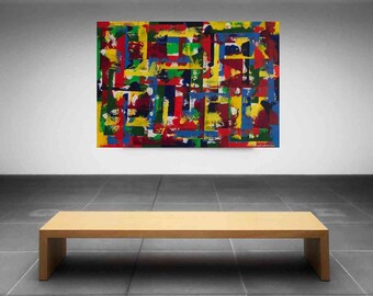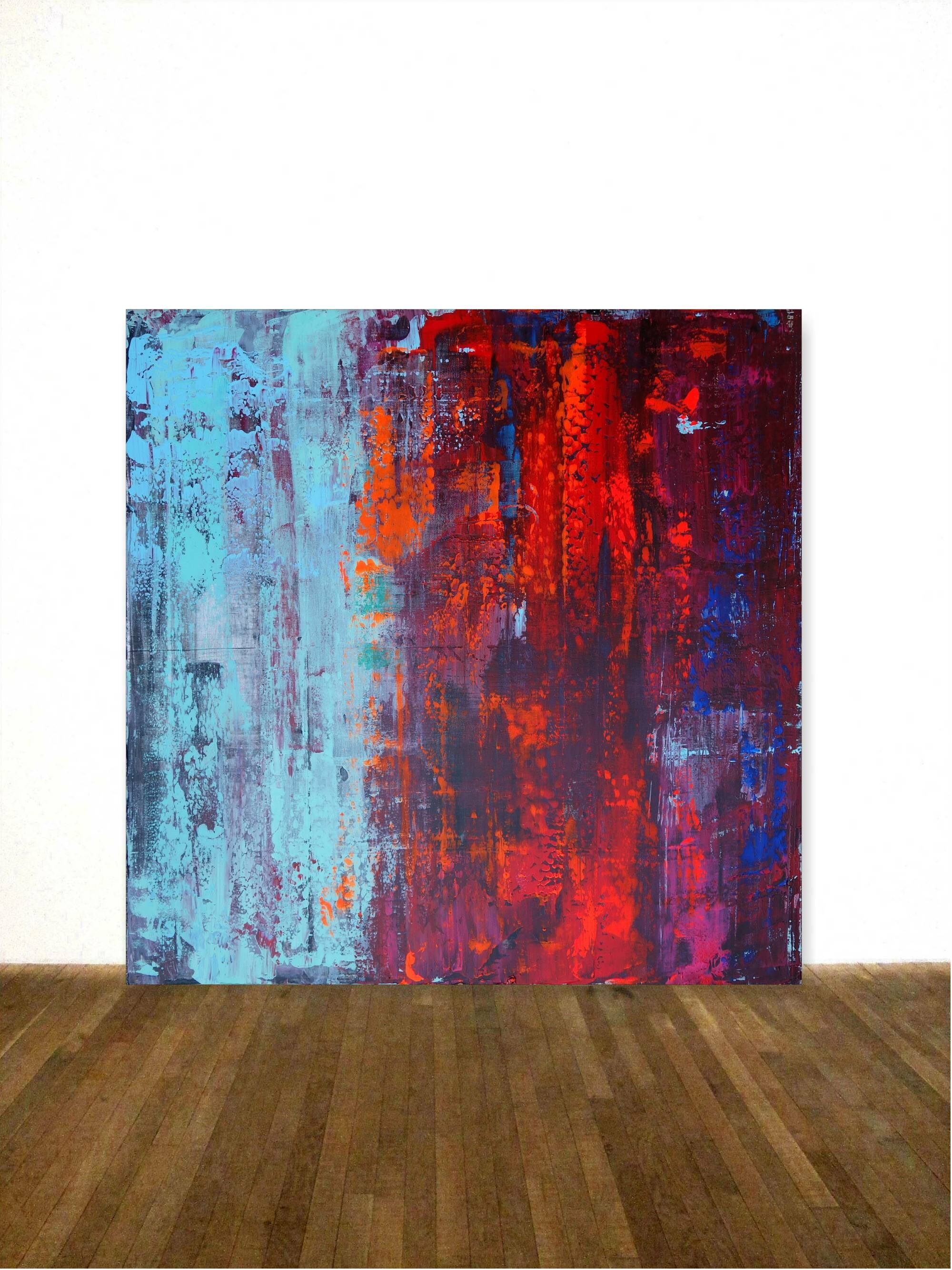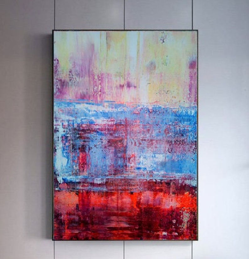 Red Blue Orange Large Abstract Painting Squeegee After Etsy