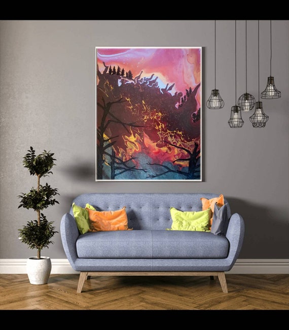 Acrylic Pour Painting Wood Burning Art Tumblr Room Decor Etsy