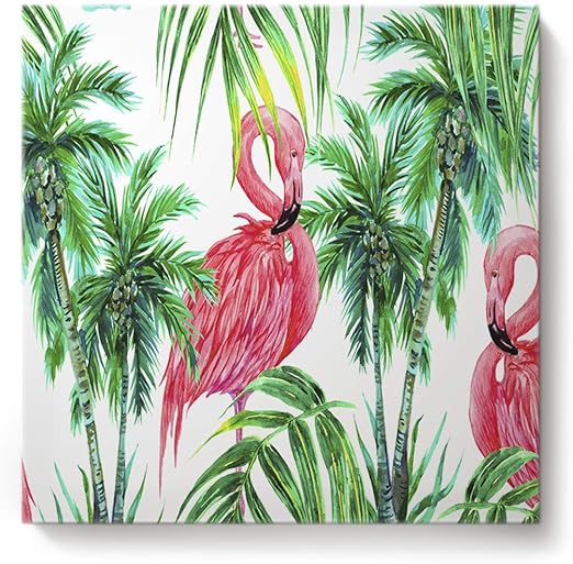 Amazon Com Pink Flamingos And Green Palm Tree Oil Paintings On