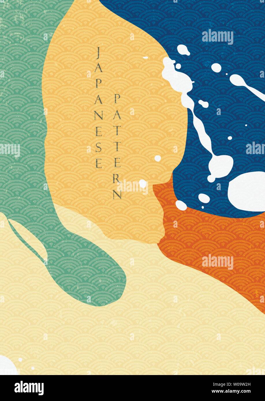 Watercolor Painting Background With Japanese Wave Pattern Vector