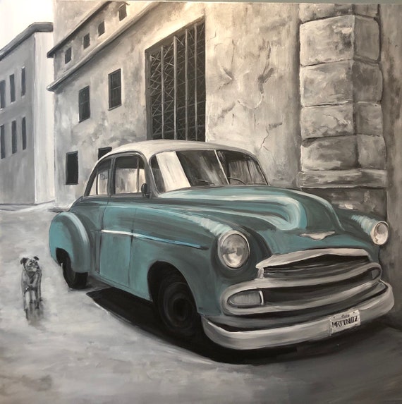 Car Painting Original Acrylic Painting Of A Classic Car Etsy