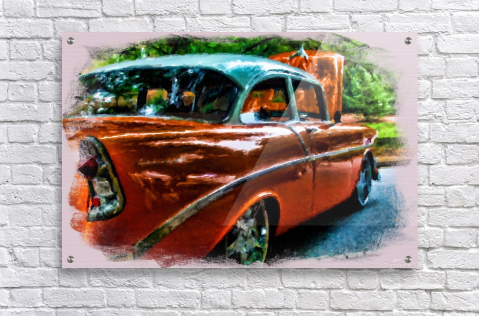 Red Chevrolet Bel Air Car Painting Acrylic On Canvas Painted By