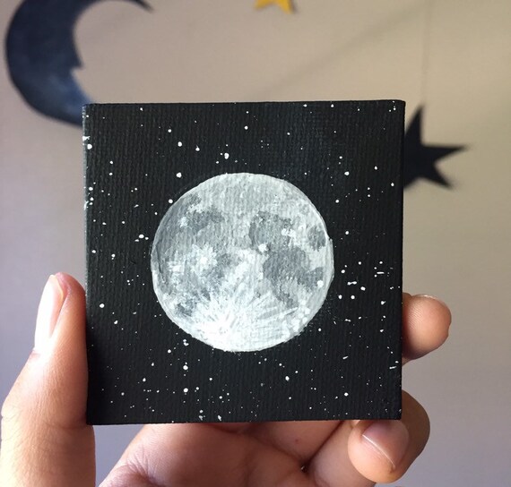 Original Mini Canvas Painting 2 5x2 5 Full Moon Mini Etsy