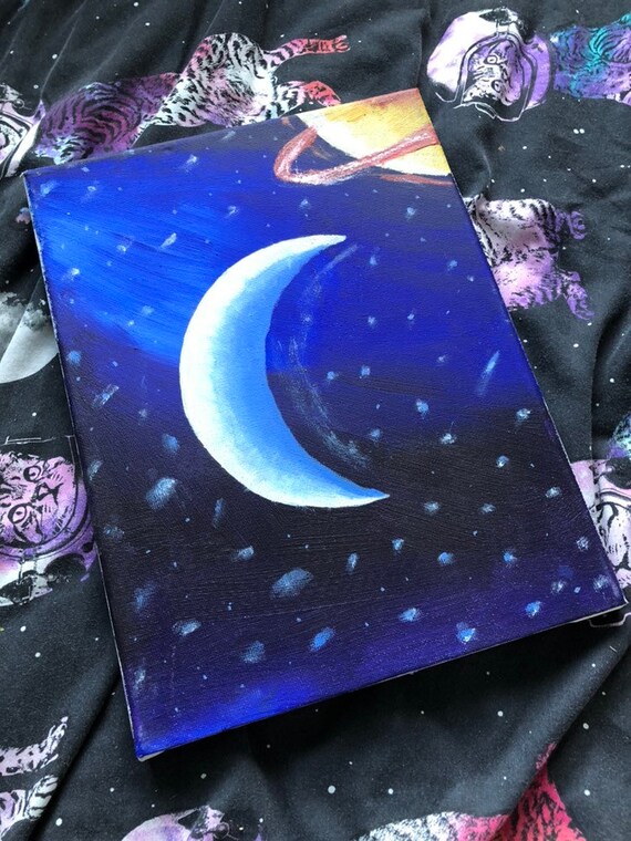 Crescent Moon Acrylic Painting On Canvas Etsy