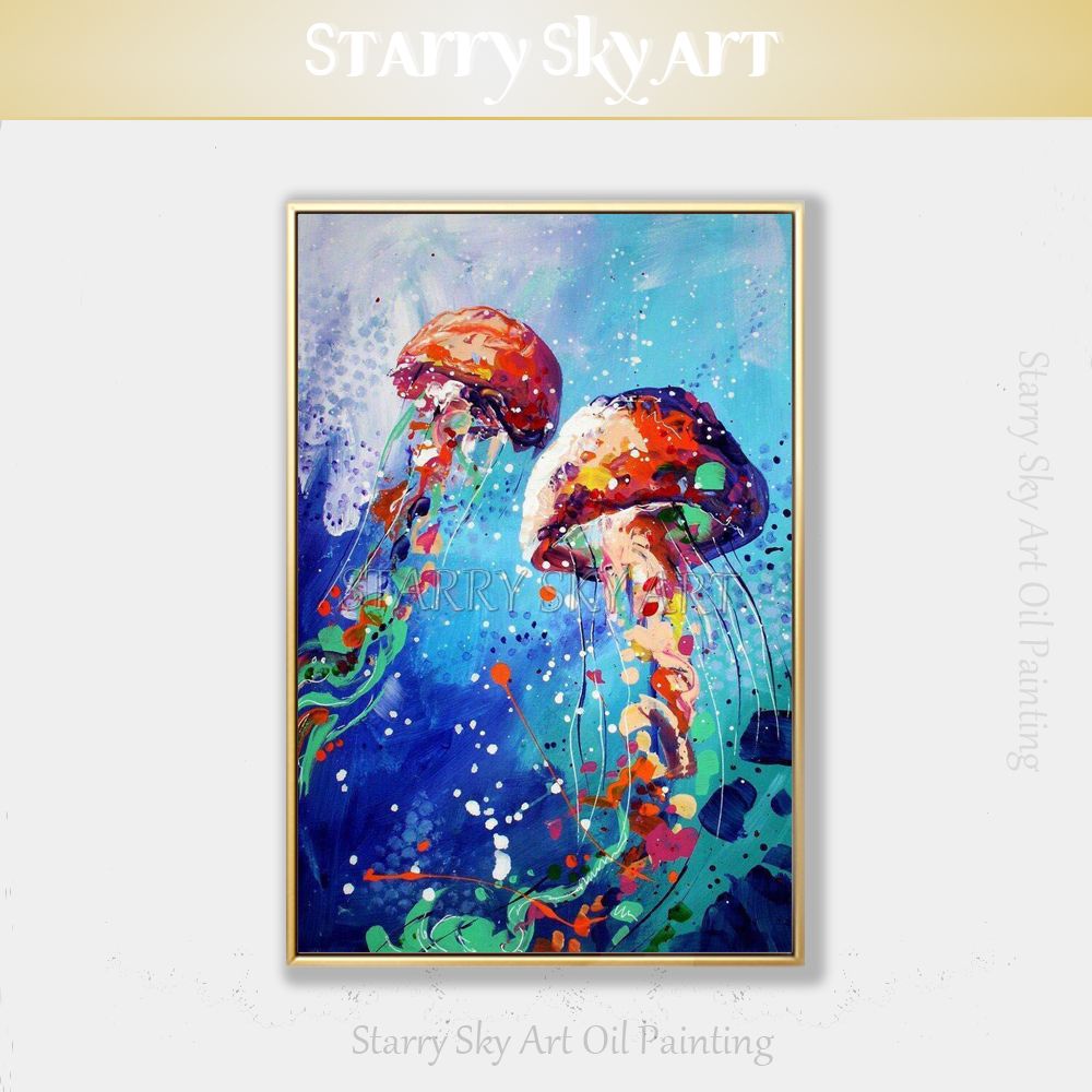 Hand Painted Beautiful Jellyfish Oil Painting On Canvas For Home