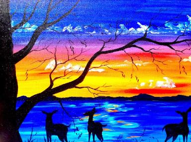 Beginners Acrylic Painting Tutorial Deer And Sunset Lake