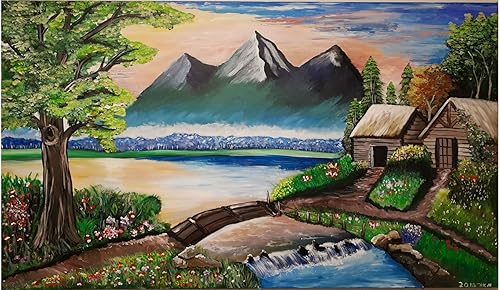 Amazon Com Vibrant Mountain And Stream 12x16 Acrylic Painting On