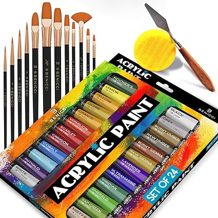 Complete Acrylic Paint Set 24 Rich Pigment Colors 12x Art