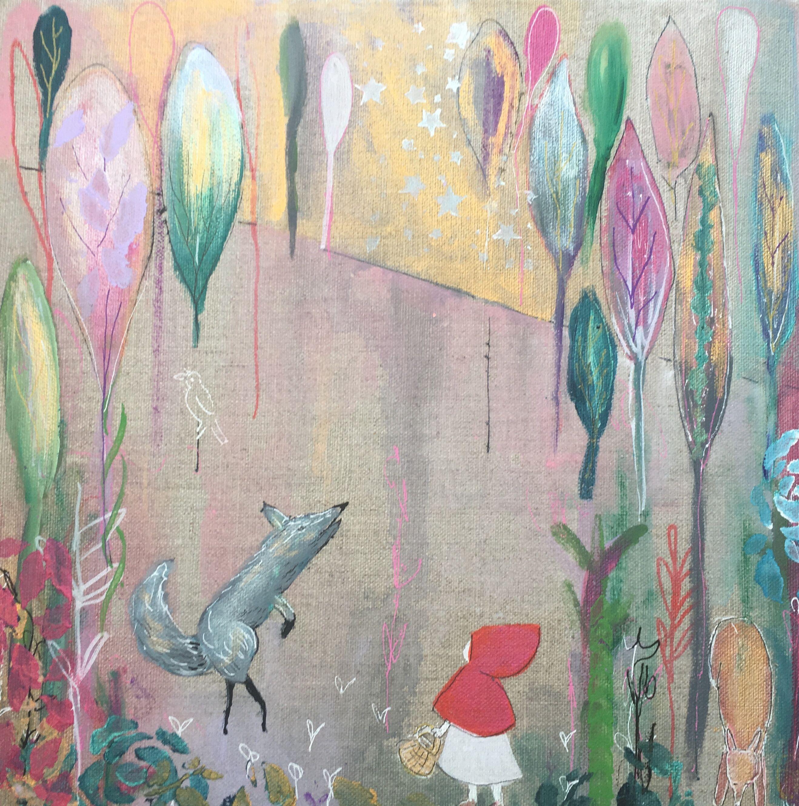 Claire Westwood Red Riding Hood Original Raw Linen Canvas