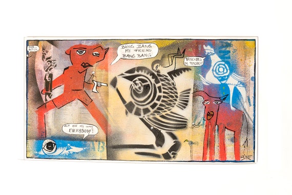 In Action Original Art Art On Plywood Stencils Graffiti Etsy