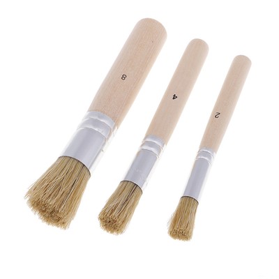 3 Pcs Wooden Stencil Brush Natural Bristle Brushes For Acrylic